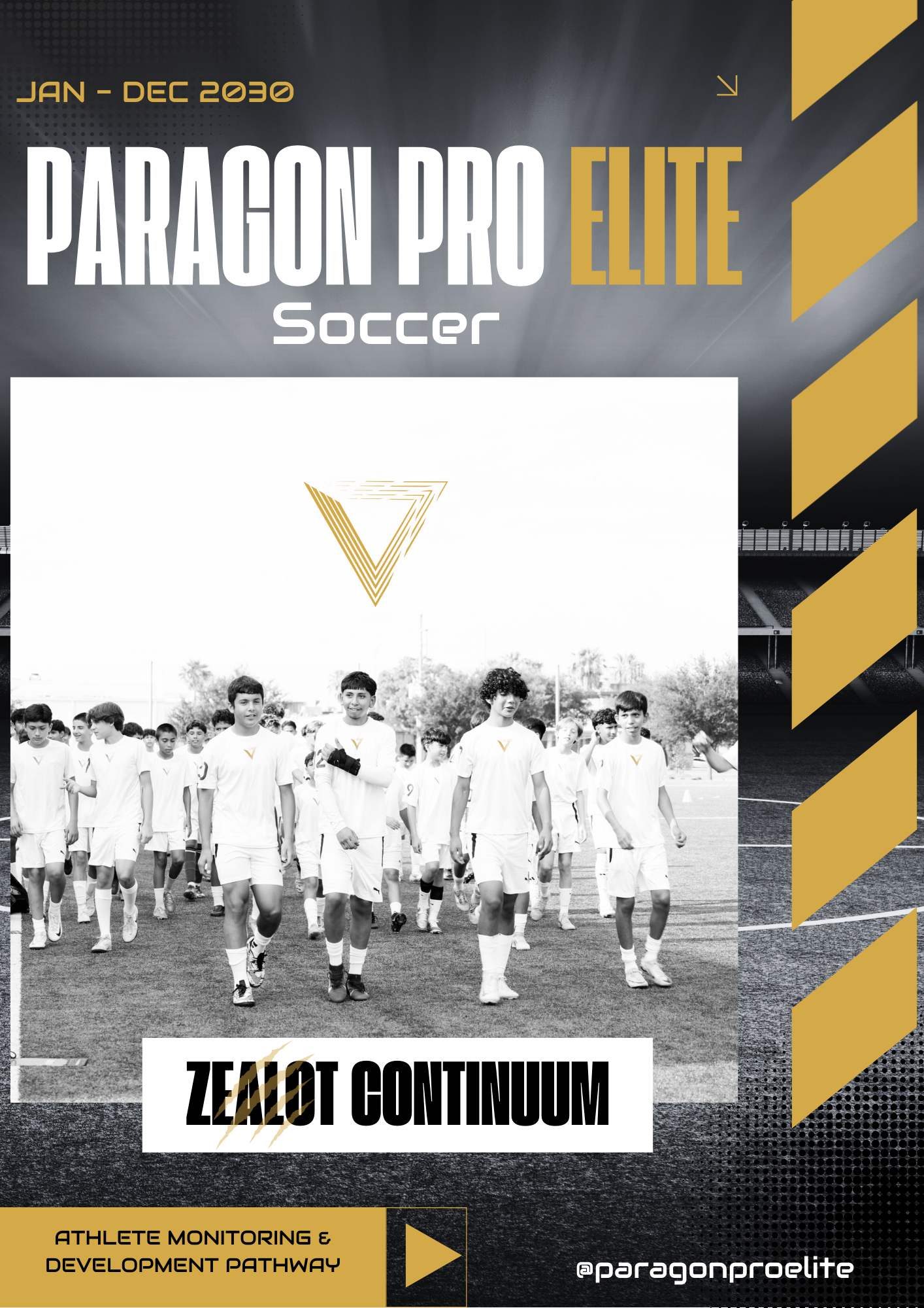 The PRO Zealot Program is a high-performance development track led by certified Paragon Pro Elite professionals. Athletes receive a multi-evaluator assessment across all core soccer components—technical, tactical, physical, psychological, and team dynamics—with actionable feedback tied directly to their PPE evaluation profile.